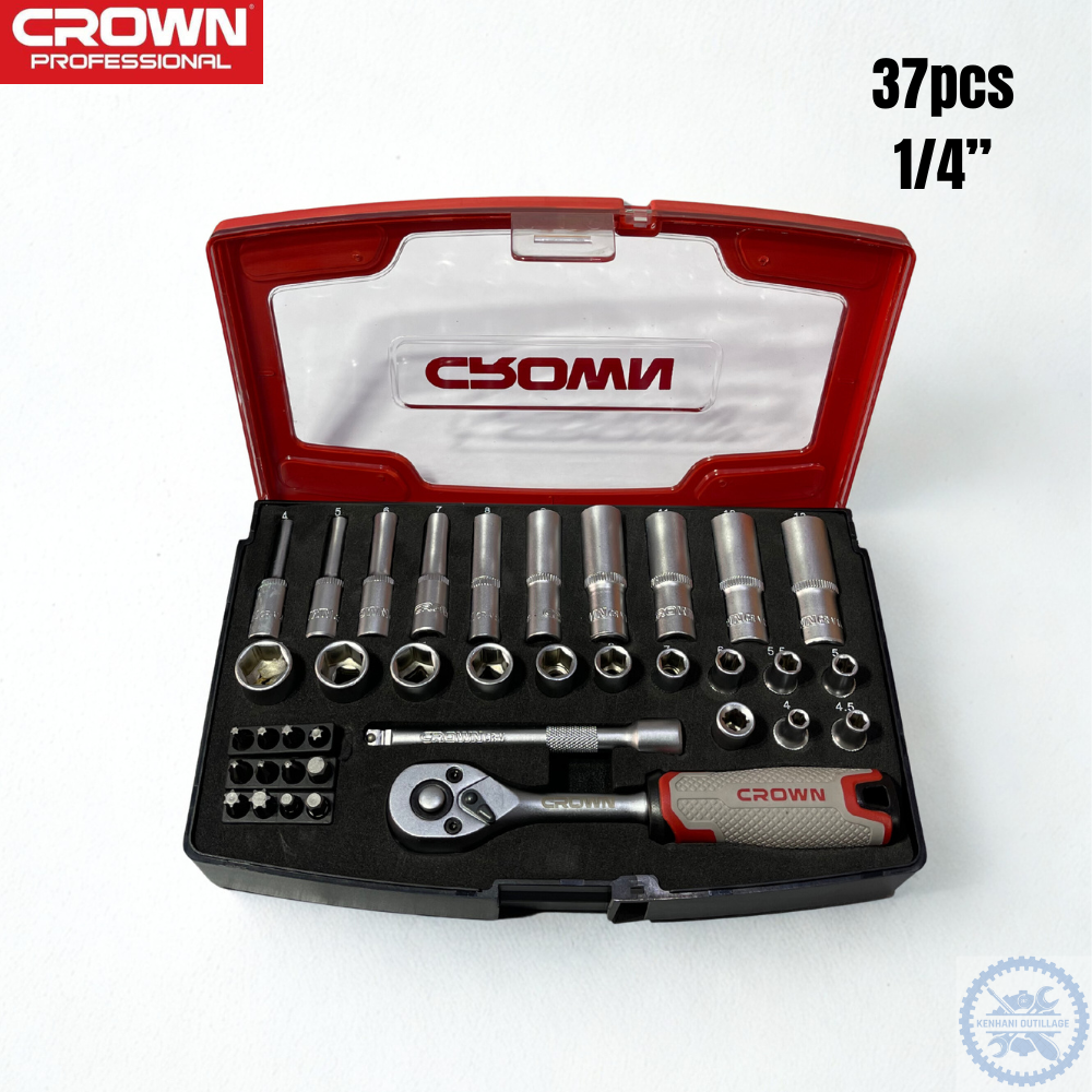 BOITE A OUTILS 37PCS CROWN A DES DOUILLE 1/4″ LONGUE ET COURT + DES EMBOUTS TORX ET ALENE DU BONNE QUALITE