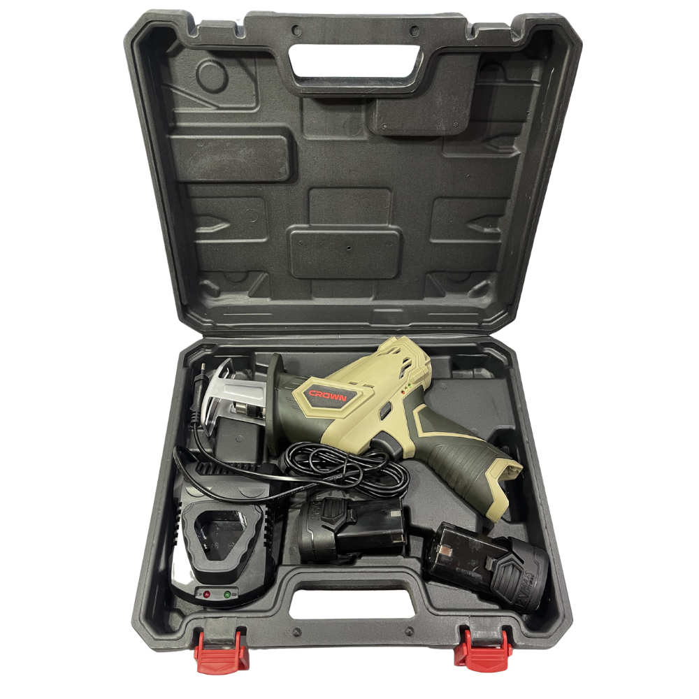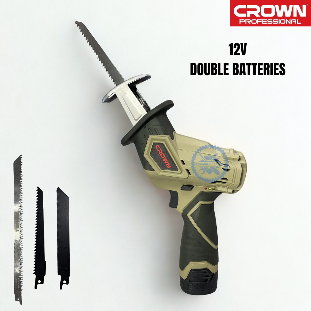SCIE SABRE S/FIL CROWN AVEC DOUBLE BATTERIES 12V + 3 LAMES POUR ( BOIS , ACIER ET UNE LAME ALLIMENTAIRE )